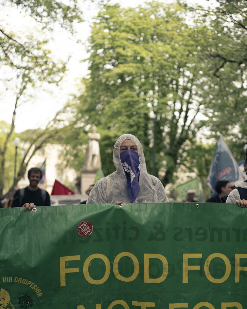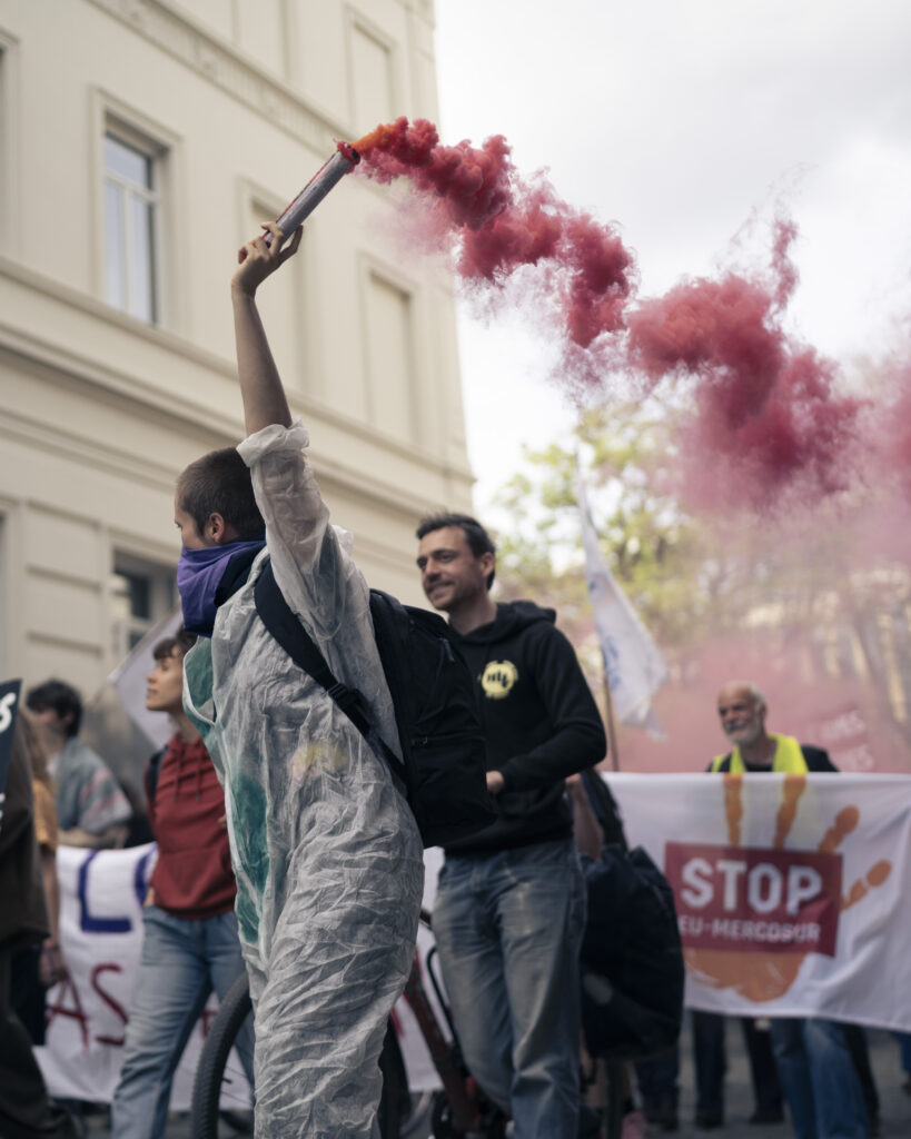 Des représentant·es de la Confédération paysanne, de La Via Campesina et du Mouvement des Sans Terre — parmi lesquels un rescapé du massacre de 1996 – Batista Nacimento da Silva – étaient présent·es. Leurs discours ont alertés sur les impacts potentiels de l’accord, notamment sur la viabilité de l’agriculture paysanne et familiale, l’environnement et la biodiversité, ainsi que sur les droits humains et les conditions de travail en milieu rural.