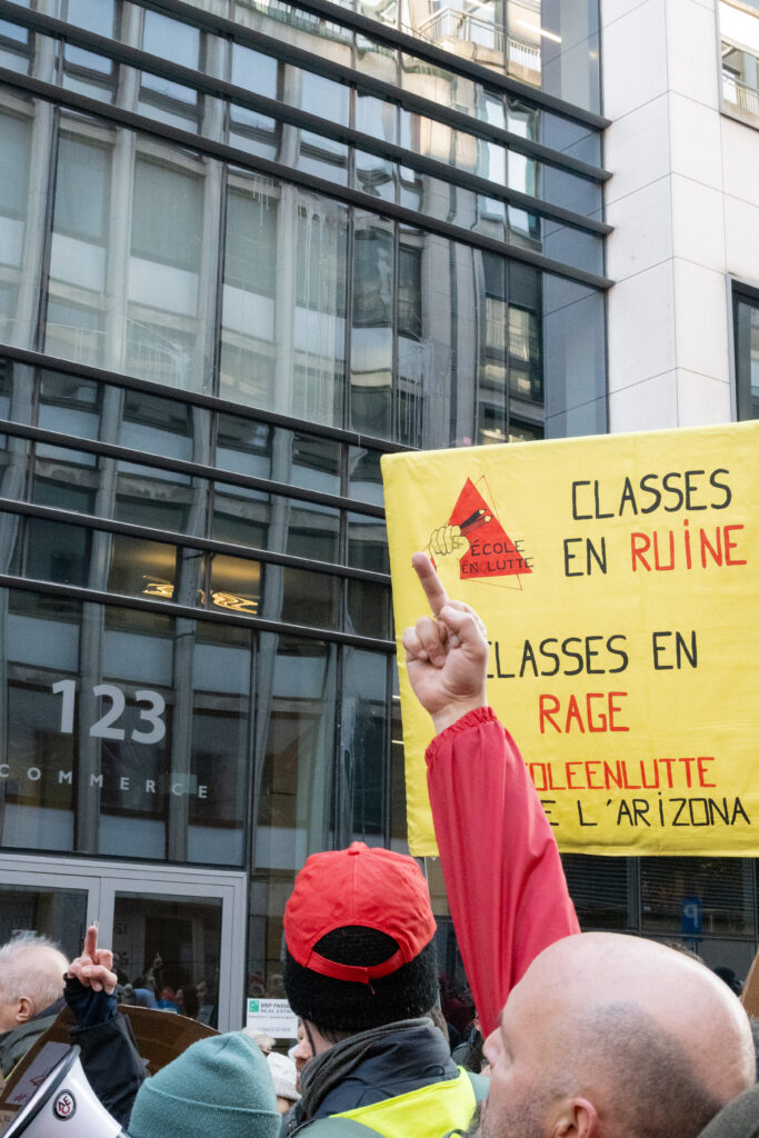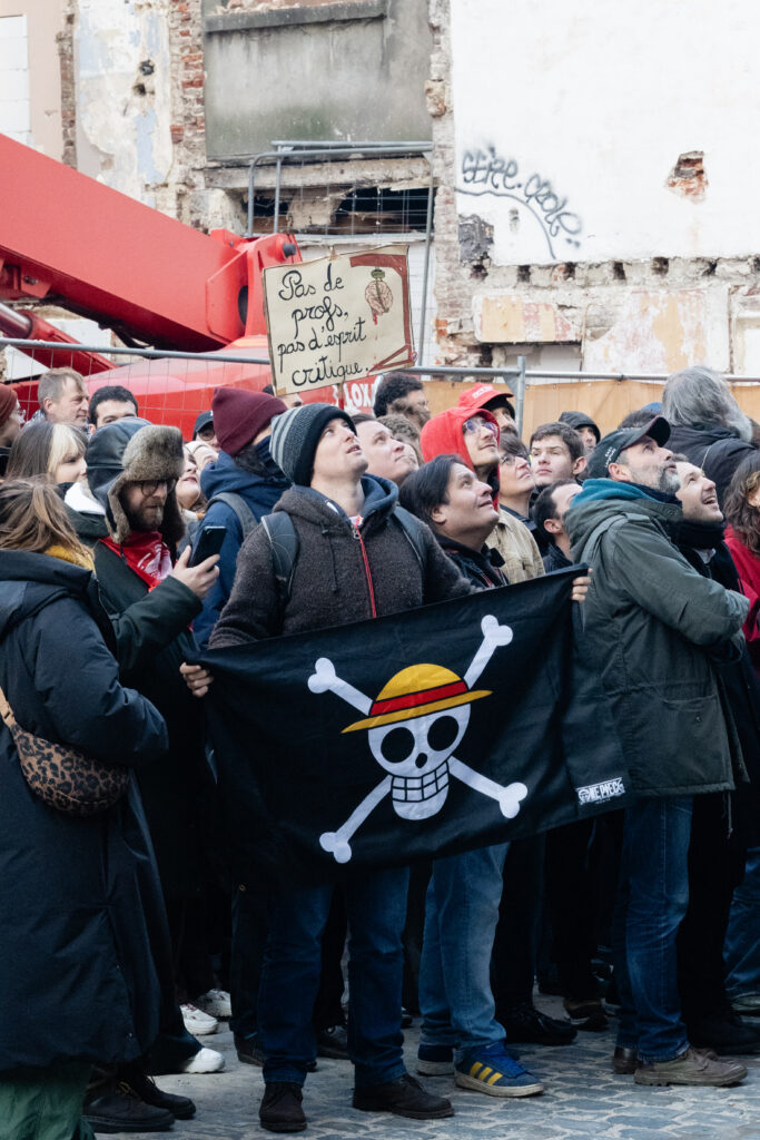 C’est une mobilisation large, en front commun syndical, regroupant travailleur·euses de la culture, de l’enfance, de l’aide à la jeunesse, du monde étudiant ou de l’enseignement, qui a déambulé entre la place du Luxembourg et la place Surlet de Chokier où se situe le siège du gouvernement de la FWB. Un arrêt a également eu lieu devant le siège des engagés, qui a été généreusement ciblé par des oeufs.